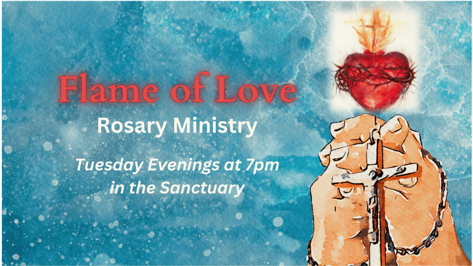 Flame of Love Rosary All members are welcome to attend the weekly recitation of the Rosary every Tuesday at 7 PM LIVE in the Sanctuary.